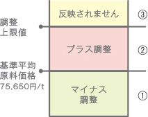 ③平均原料価格が基準平均原料価格を160%を超える場合は、上限値をもって調整します。